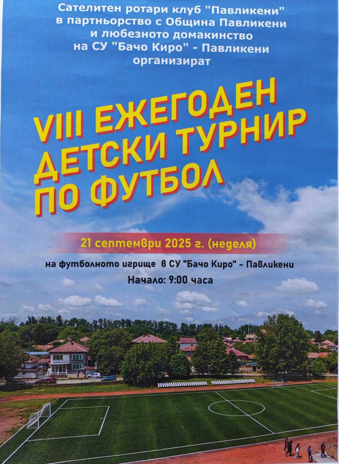 На 21.09.2025 г. се проведе традиционният есенен футболен турнир за деца по повод Есенния панаир на Павликени. Събитието премина под патронажа на кмета на общината инж. Емануил Манолов и с любезното домакинство на СОУ „Бачо Киро“.